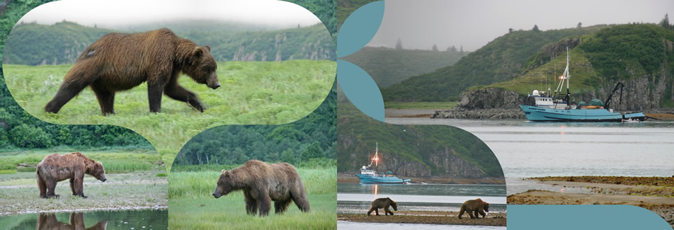 Alaska Leader Tours invites you aboard the 110' R/V Alaskan Leader to experience Brown Bear Viewing at its wildest in the beautiful and remote area of Katmai National Park and the Alaska Peninsula. This trip originates from Kodiak Island which is known as the Emerald Island and is worthy of exploration as well. We will coordinate flight service for you from Kodiak, Alaska to the R/V Alaskan Leader anchored up off the Katmai Coast in a calm protected bay. Your air charter will embark upon a scenic flight over the Sheilokof Strait to the remoteness of the Alaska Peninsula. Along your aerial excursion, your pilot will guide you as you fly to the Katmai National Park to be on the look-out for whales, bears and points of interest. After approximately 1 hour in the air from the City of Kodiak you will arrive to the vessel where your bear viewing adventure begins with Alaska Leader Tours. We are proud to be permitted to work within the Katmai National Park.